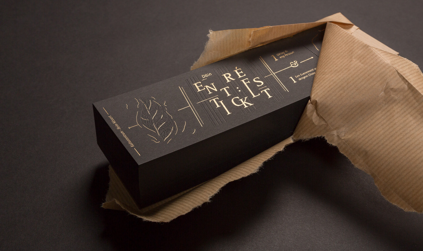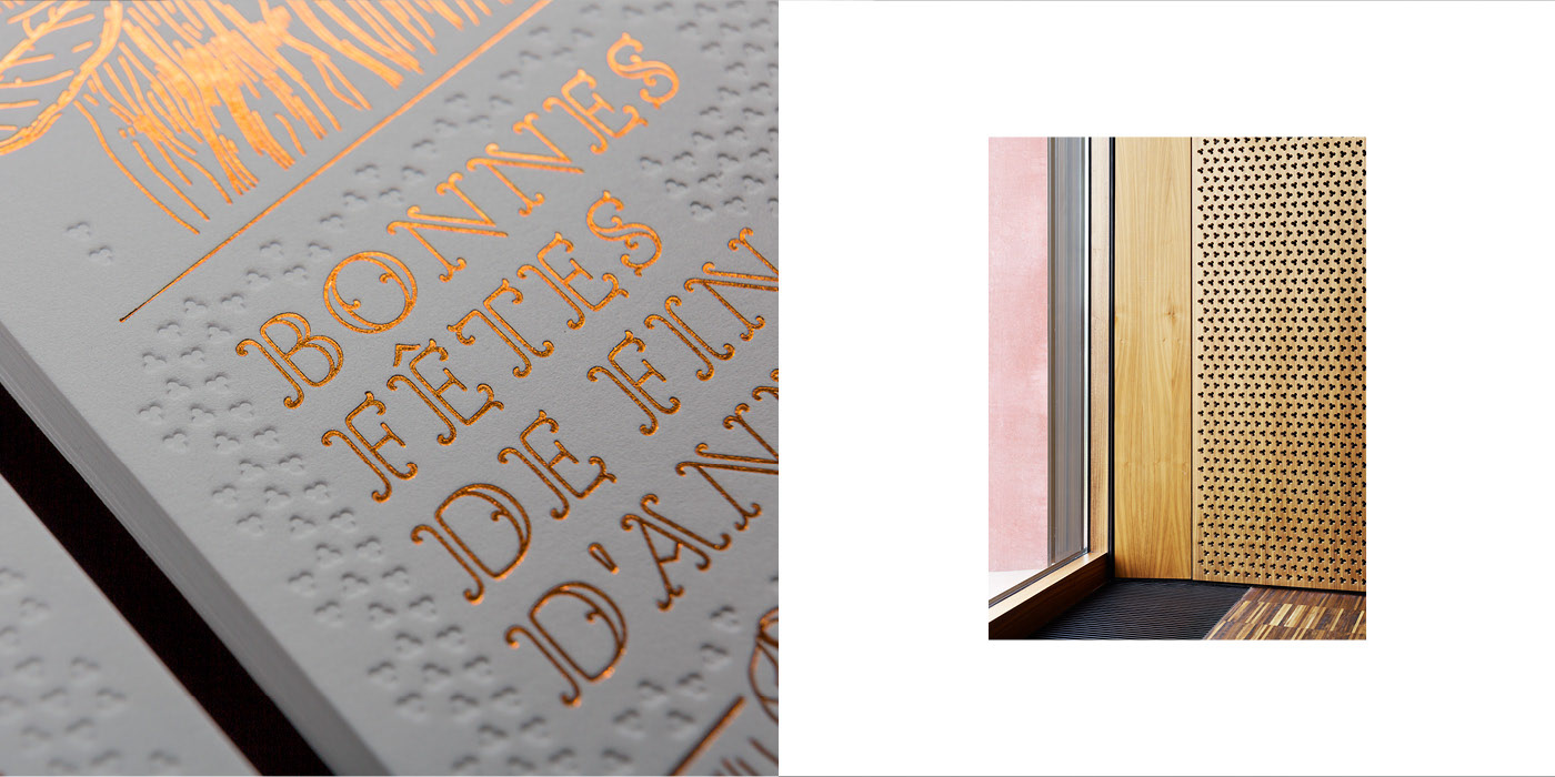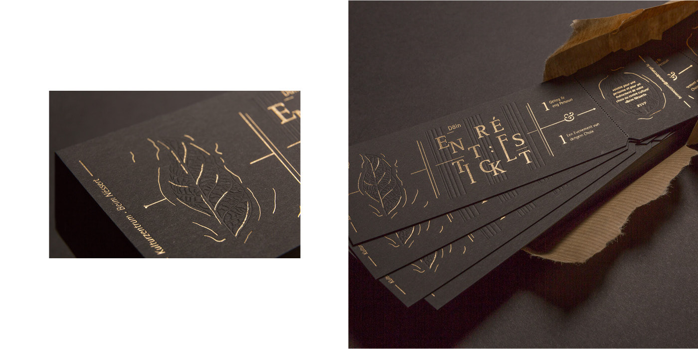 Letterpress prints for the cultural center «Beim Nëssert». Inspired by the architectural features of the building itself, we designed these festive and luxury letterpress cards.