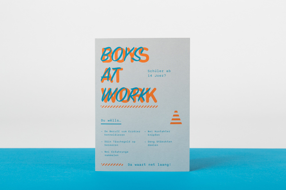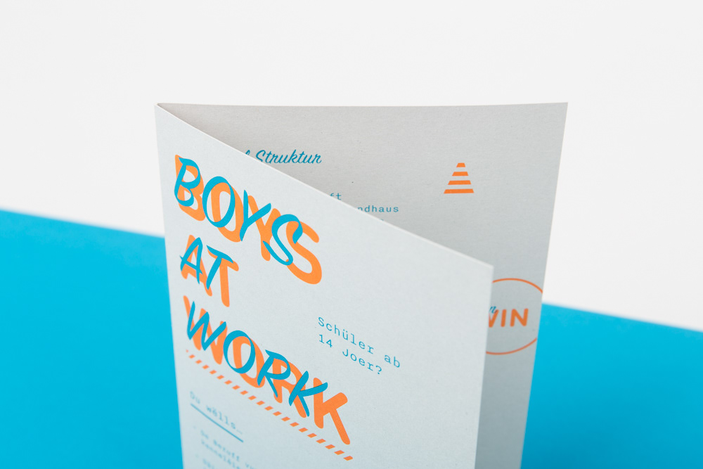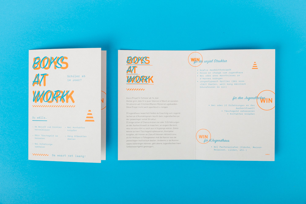 Flyer to encourage boys to work in social structures as nursery school or childcare centres. Project was created for the local youth club.