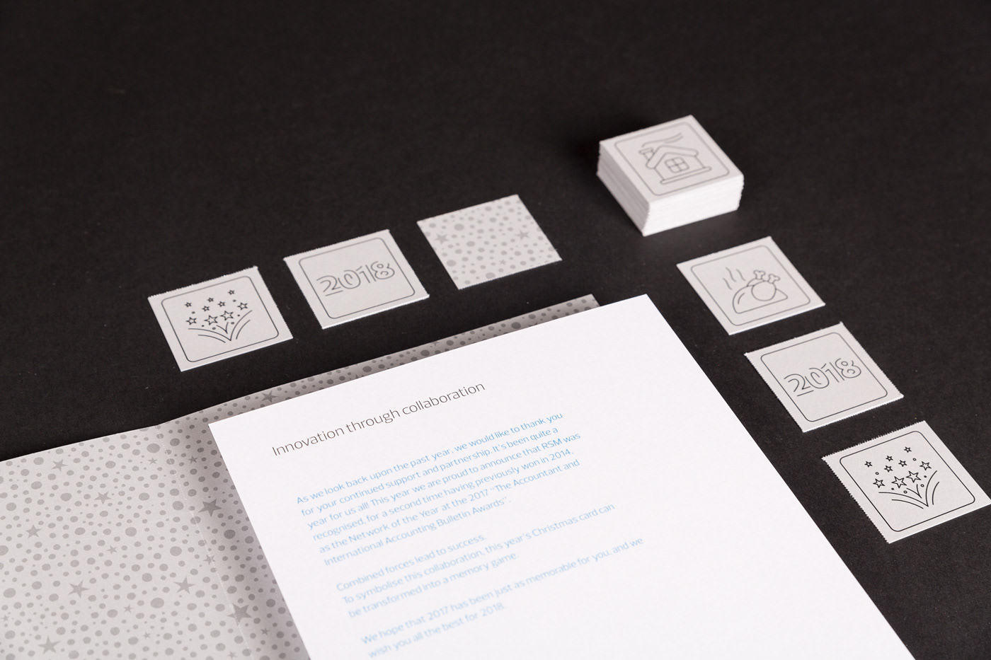 The client's subject for this greeting card was “innovation through collaboration”. So we thought, that we should create something with which the recipient of the card could collaborate. Therefore, you can transform the greeting cards into a memory game.